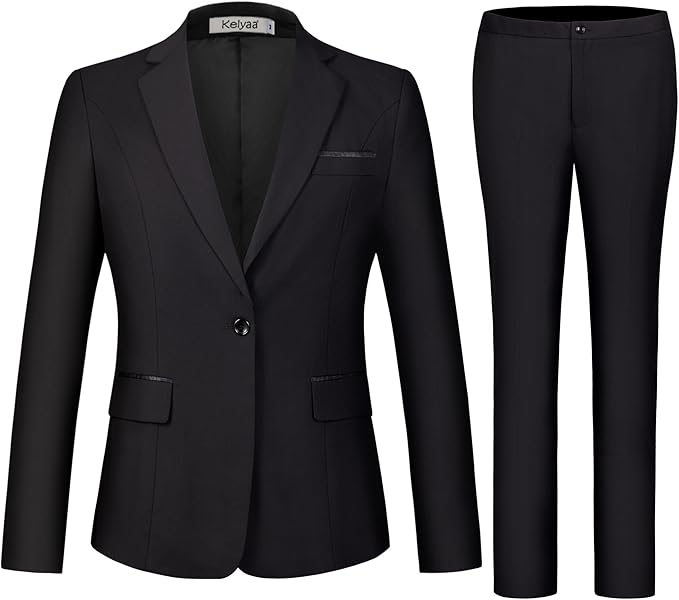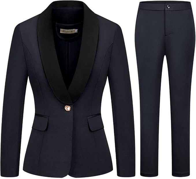 Women's Business Pant Suit Set 2 Piece Slim Fit Blazer Jacket One Button Buckle Closure Lady Work Suit for Office