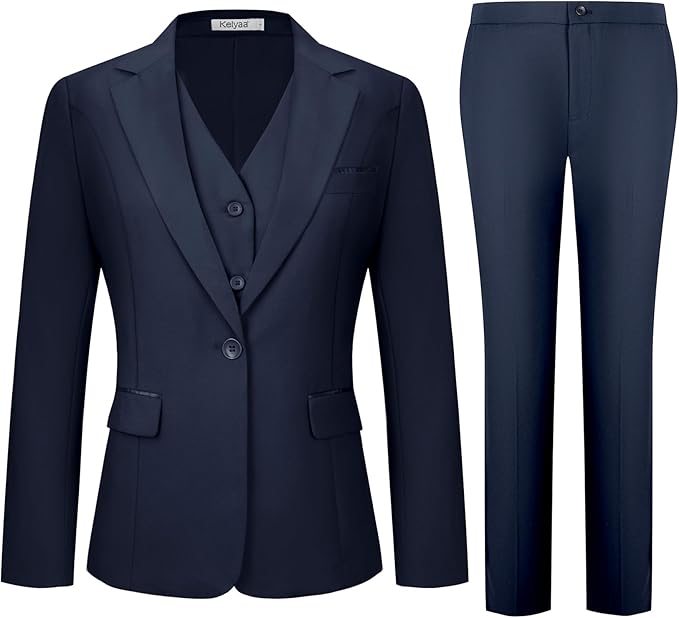 Women's 3 Piece Suit Lady Business Casual Office One Button Slim Fit Blazer Jacket Vest Pants Set