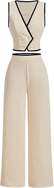Women's 2 Piece Outfits Wrap V Neck Button Down Sleeveless Suit Vest and Wide Leg Pants Pant Suits Dressy