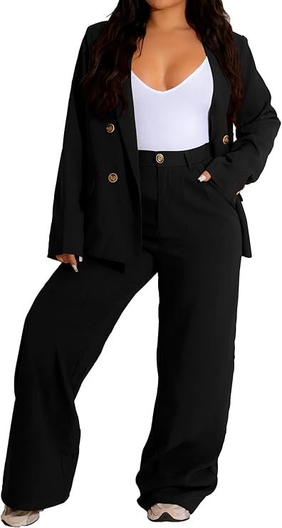 Women's Two Piece Outfits Casual Blazer Jacket Wide Leg Work Pants Business Suit Sets with Pocket
