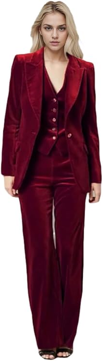 3 PC Womens Velvet Suit One Button Womens Prom Suit Office Work Suit Womens Pants Suit