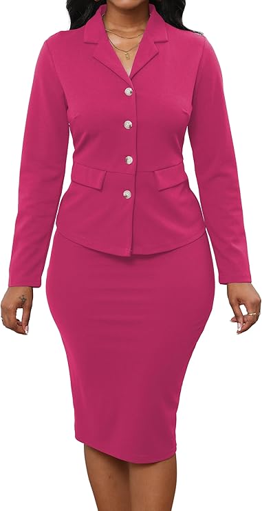 Women's 2 Piece Outfits Business Work Clothes Blazer Jacket and Skirt Set Suits