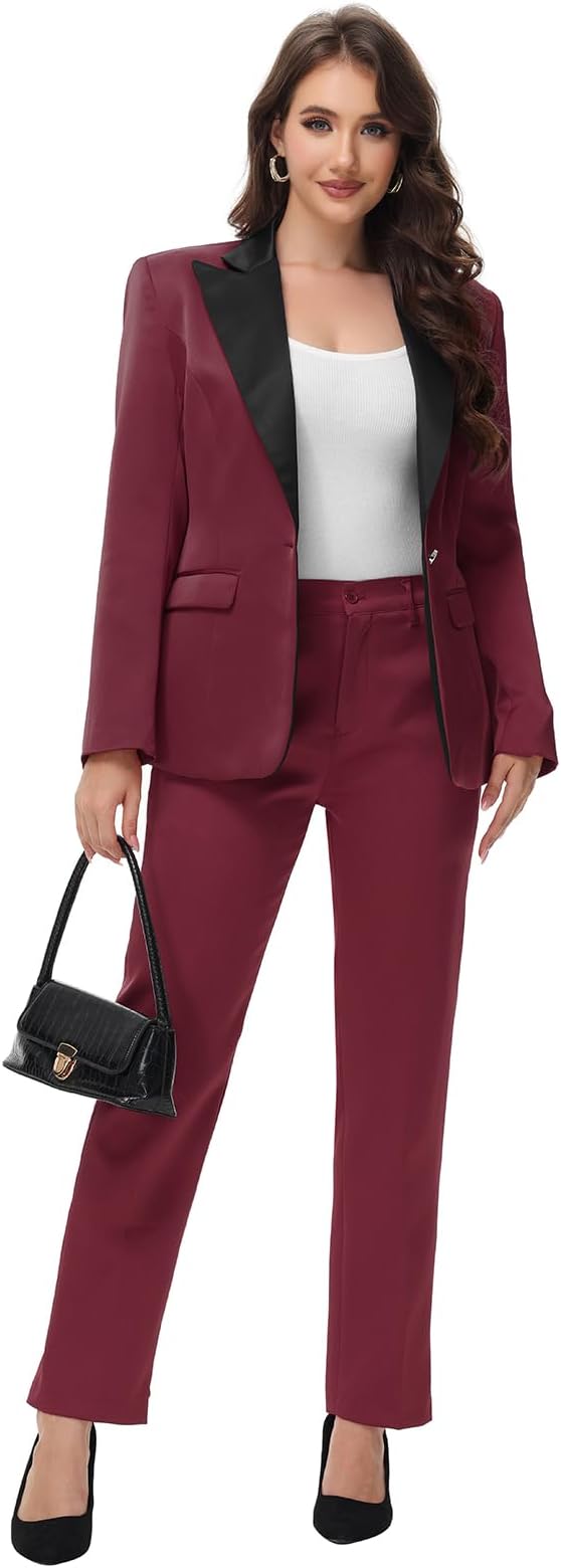 Women's Suit 2 Pieces Shawl Lapel Satin Pantsuits One Button Tuxedo for Dinner, Event and Work