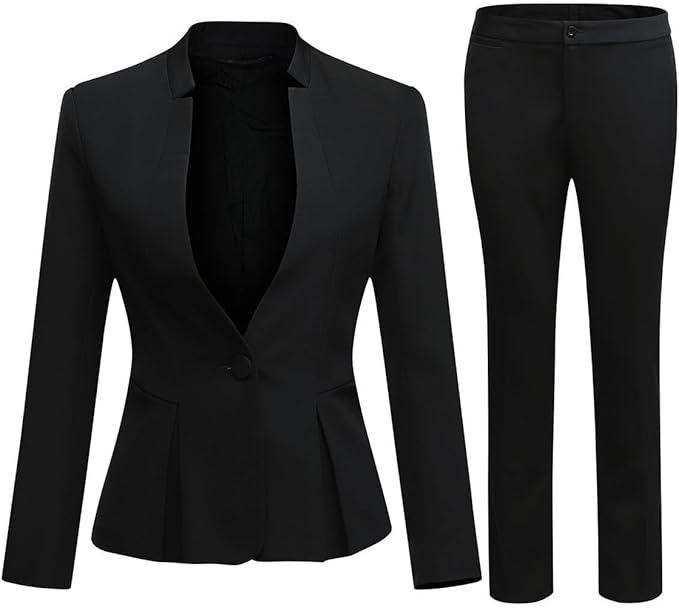 Women's Business Office 1 Button Blazer Jacket and Pants Suit Set