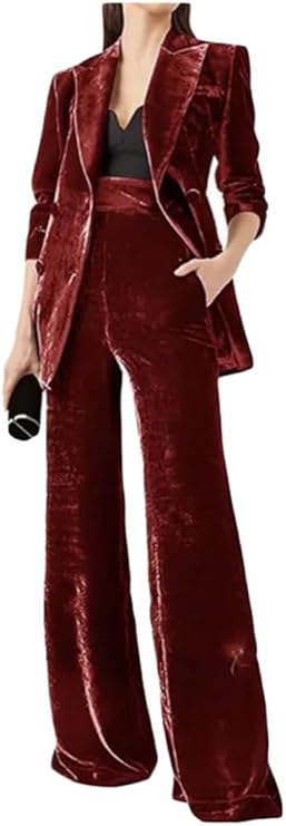 Women's 2 Piece Velvet Suit Office Work Suit Notch Lapel Double Breasted Blazer Pants Business Suits Set for Women