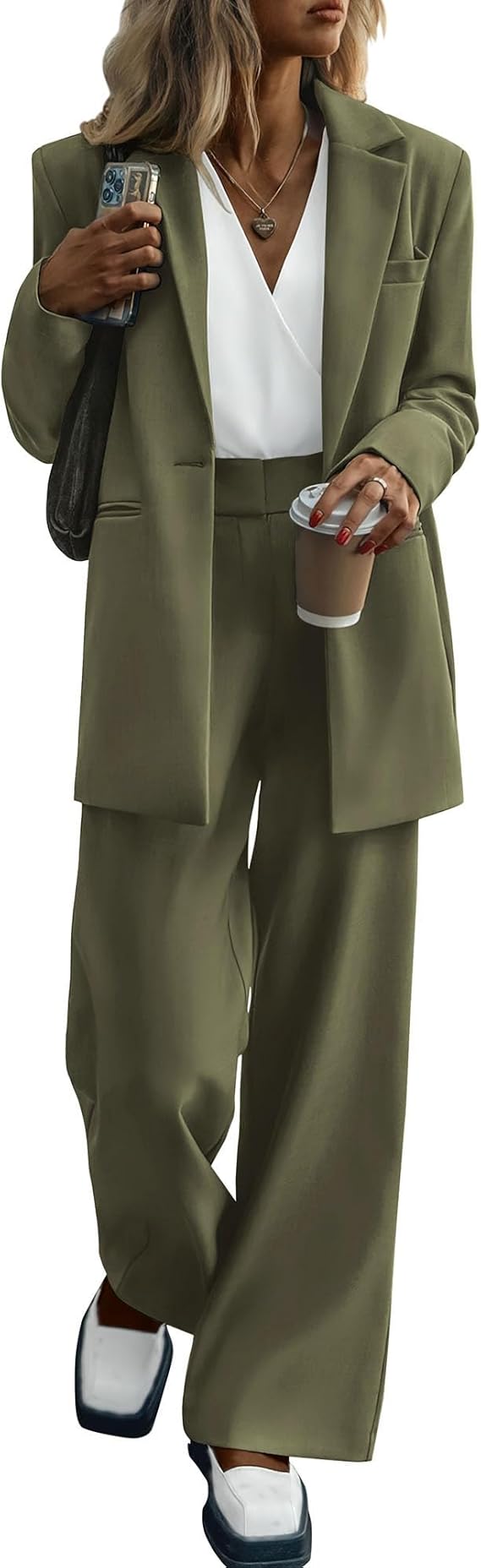 2 Piece Pant Suits for Women Dressy Blazer High Waisted Straight Leg Pants Sets Business Casual Outfits