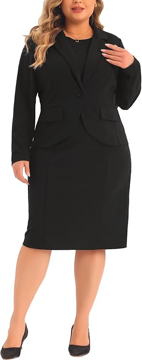 Plus Size Dress Suits for Women Two Piece Outfits Blazers Jacket and Sleeveless Dress Business Casual Suit Sets