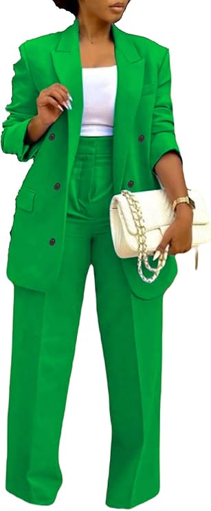 2 Piece Outfits for Women Dressy Double Breasted Blazer Jackets High Waisted Wide Leg Pants Suits Set Casual Business