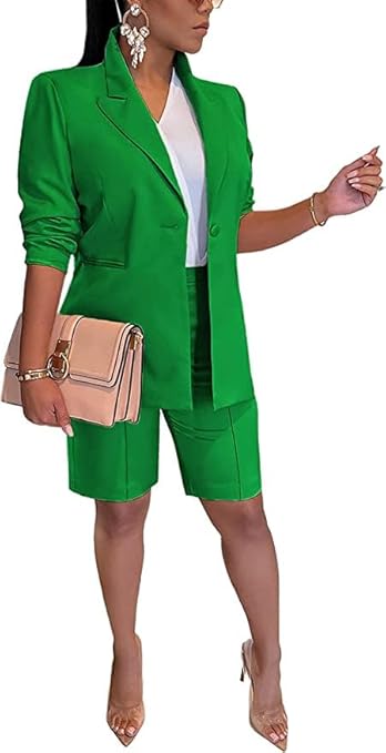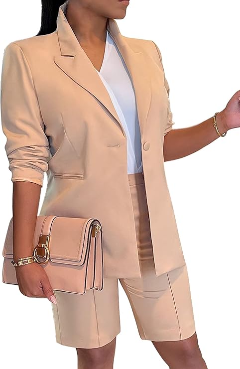 Women's 2024 Fashion Blazer Shorts Set Long Sleeve Office Suit Sets Casual 2 Piece Business Outfits
