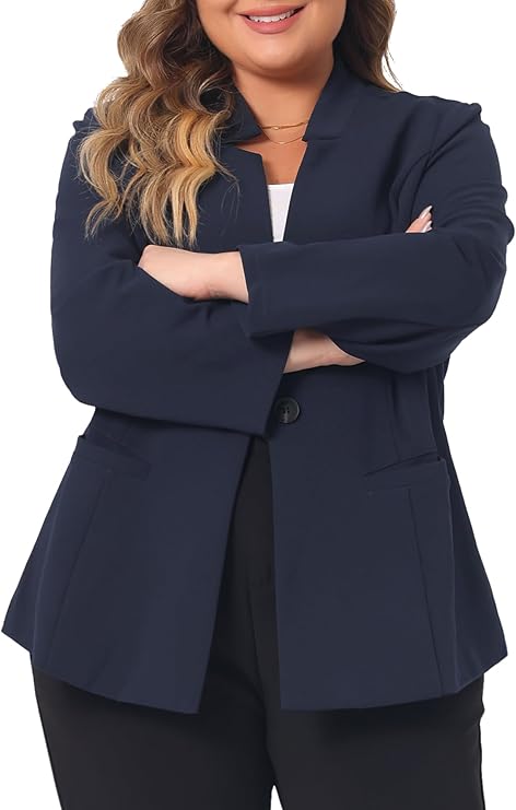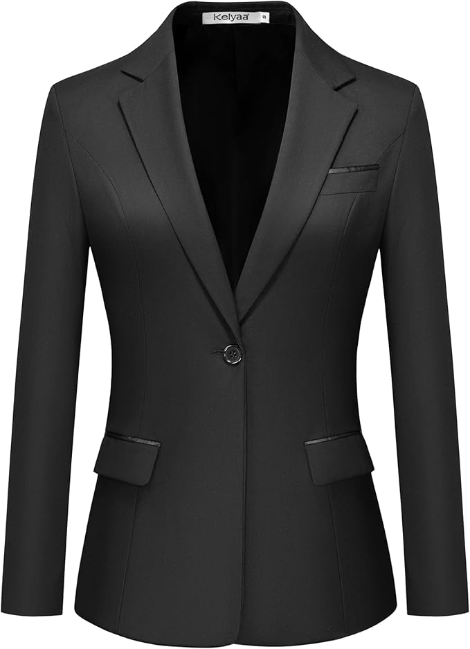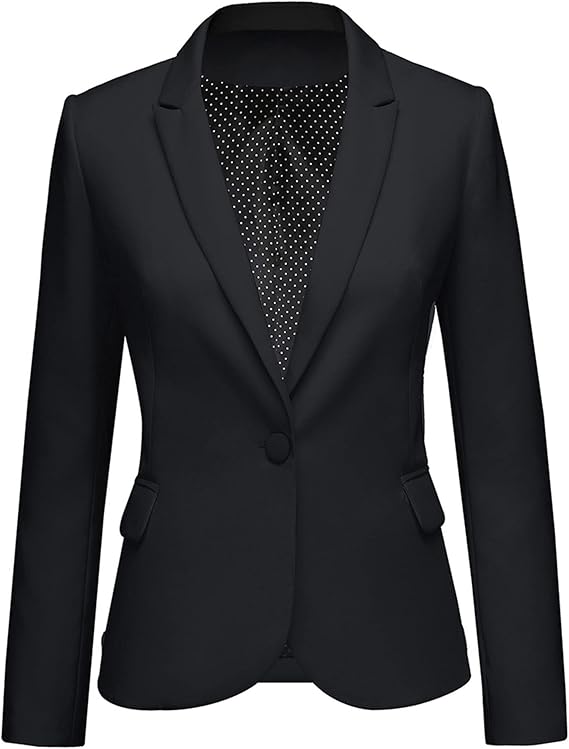 Women's Casual Business Blazer Notched Lapel One Button Open Front Long Sleeve Blazers Office Work Suit Jackets