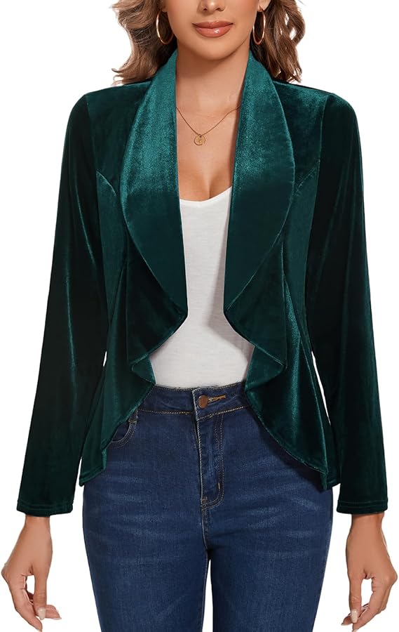 Womens Velvet Blazer Suit Open Front Long Sleeve Open Front Jacket Blazers Formal Events Work Office,Green,XL