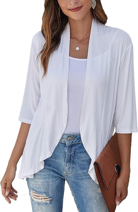 Women's Casual Lightweight Open Front Cardigans Soft Draped Ruffles 3/4 Sleeve Cardigan (S-3XL)